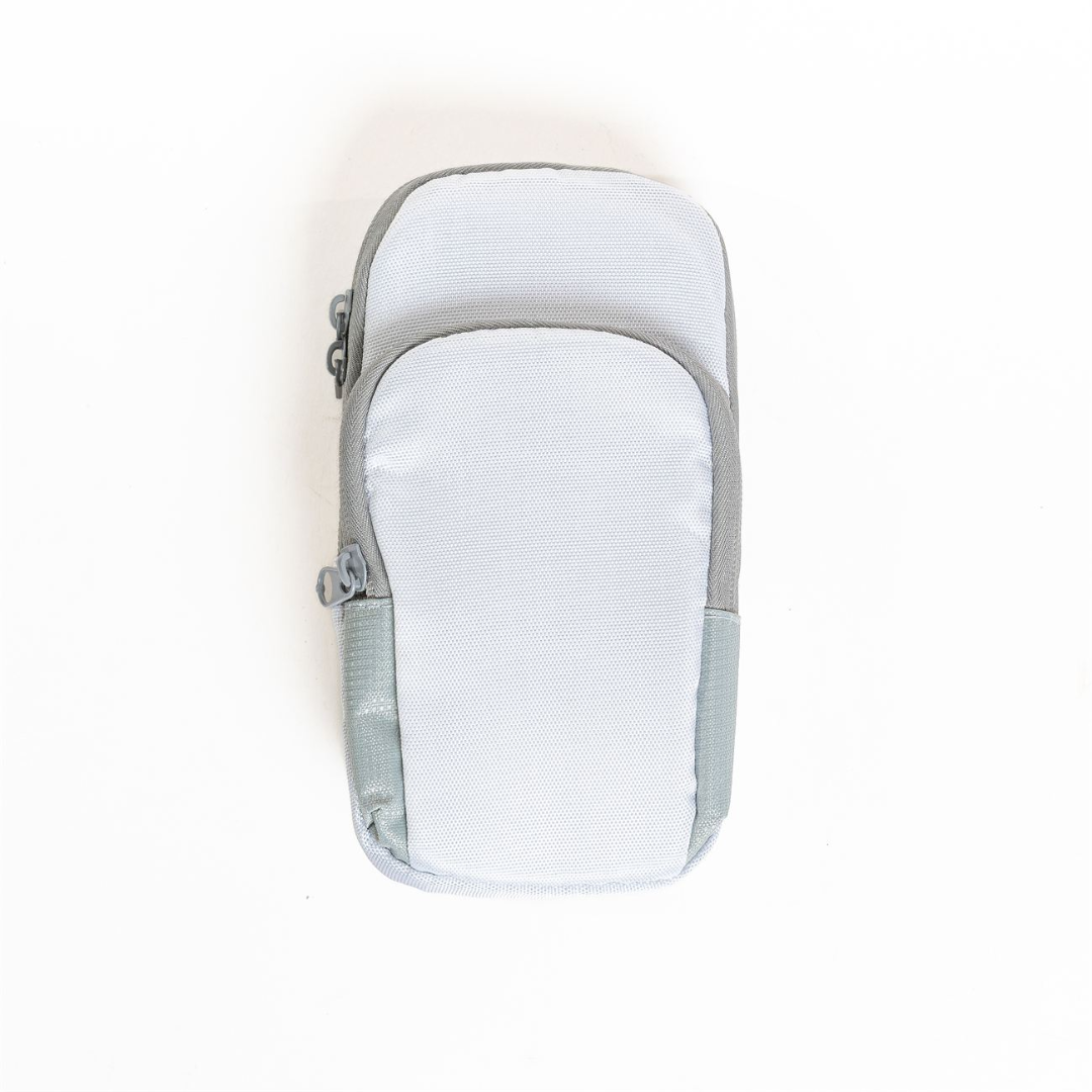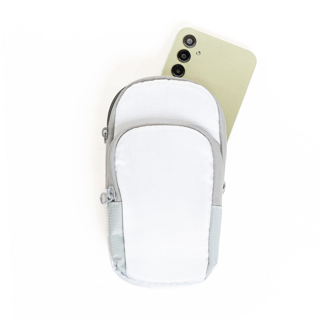Bolsillo contenedor para el celular de 18cm x 9cm con cierre doble, bolsillo frontal de 14cm x 8cm con cierre. Sector interno de contacto con red, interiores forrados, paredes acolchadas. Cinta del brazalete regulable elástica con velcro.