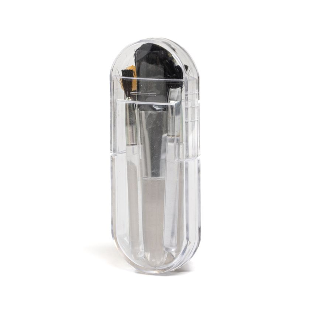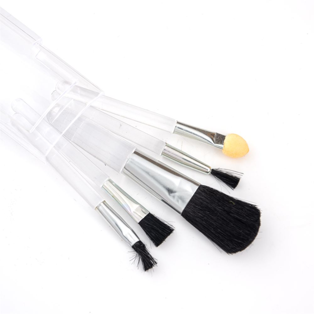 Dimensiones: 8,5 x 3,5 cm.Set de maquillaje de 5 piezas: 4 brochas y 1 esponja para sombras.